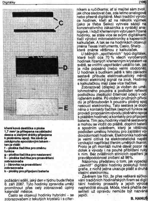 NEDĚLE 06.05.2001 14:23 Neděle. Dneska by se mělo chodit do kostela. Ale lepší je ráno spát a probudit se až qobědu. Dopsal sem další týdeník na koukat.cz, kde jsem uveřejnil napínavý příběh z prostředí celníků, kteří zatknou pašeráky digitálních hodinek. Vzhledem k tomu, že dnešní mládež již neví, co to byly "pravý digitální hodinky" a co pro moji generaci znamenaly, tak zde uveřejňuji popis digitálek z dobového tisku. ![]() ![]() ![]() Moje generace odrostla v době takových fascnujících vynálezů jako byly digitální hodinky a walkman. Dobře si pomatuji na svý první hodinky - ještě ručičkový. Ty sem dostal od babičky někdy ve druhý nebo třetí třídě (84-85) a byl jsem na ně fakt hodně hrdej. Už jenom to, že sem kdykolif věděl kolik je hodin. Jenže někdy, snad v páty třídě - už to nevím přesně, se i u nás na malém městě objevily DIGITÁLKY. Jak my sme záviděli těm spolužákům, jejichž rodiče dokázali i přes veškerá rizika propašovat DIGITÁLKY z NDR nebo Polska. Dokázali jsme fascinovaně zírat na ty malý hodinky, z nichž některé uměli hrát i elektronickou písničku, měly stopky a mnoho dalších funkcí, co běžné ručičkové nezvládaly. Naštěstí i moje mátinka s babičkou z jednoho zájezdu do Karl-Marx-Stadtu v NDR přivezli, kromě spousty svetrů, i digitálky. Byly celé v modrém plastikovém pouzdře a kromě času měly i stopky. Tenkrát, v dobách vrcholného socialismu se dělaly zájezdy do NDR, protože se tam dalo koupit to co u nás nebylo k sehnání. Hlavně oblečení. Pomatuji si jak mátinka s babičkou přijeli a odmotávali si ze sebe svetry a bundy, které na vlastním těle propašovaly z NDR. Prvního walkmana sem viděl někdy ve čtvrtý třídě a jeho šťastným majitelem byl syn houpačkářů (btw. fakt hroznej debil). Taky věc, ale na walkmana sem si musel počkat až na rok po revoluci. To co pro dnešní mládež znamená mobilní telefén, to pro moji generaci znamenali digitálky, walkman nebo céčka. Fčera spolubydlící pálil na zahradě zbytky z karosérie ňákýho fakt starýho auta. Spíš teda to nebyla ani tak karosérie, jako dřevějné bednění z držáku plachty. Dřeva to byla fakt děsná síla a tak to fšechno naházel na hromadu a nejdřív z toho byl malej ohýnek, pak větší a pak fajr jaxvině, že z toho začali ohořívat větve okolních stromů. Udělal jsem pár fotek, takže až dofotím film, tak to určitě uveřejním, protože větší oheň se v centru města už asi nemůže vyskytovat. Tedak kromě regulérního požáru domu. Radší si pudu číst, přeci jen je lepší vyplnit nedělní odpoledne něčím kulturnějším, než je xcaní do deníčku. Právě včas se ochladilo, zbytky dítěte už tak nesmrděj.